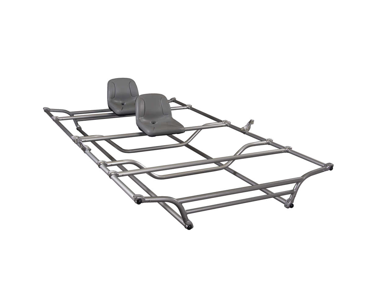 - Frame includes: Four Side Rails, two 72" Yokes, two Foot Bars, two Universal Seat Mounts, three Cross Bars, two NRS 9' straps and strap slides, two High-Back Drain-Hole Seats and a pair of 8" Oar Mounts.