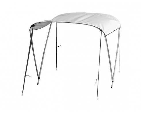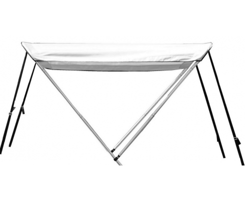 Deluxe 2-bow canopy has two support poles on each side which form a V, and anchors to the oar locks with provided clips, or splash guard grommets near the center of the boat. The 2-bow canopy is held in place by 4 bow lines, two center brackets, and two stern lines. Support poles can be pushed up to several inches inward or outward.