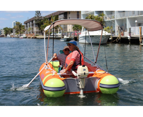 Boxy Inflatable Boat with Deluxe Bimini Installed
