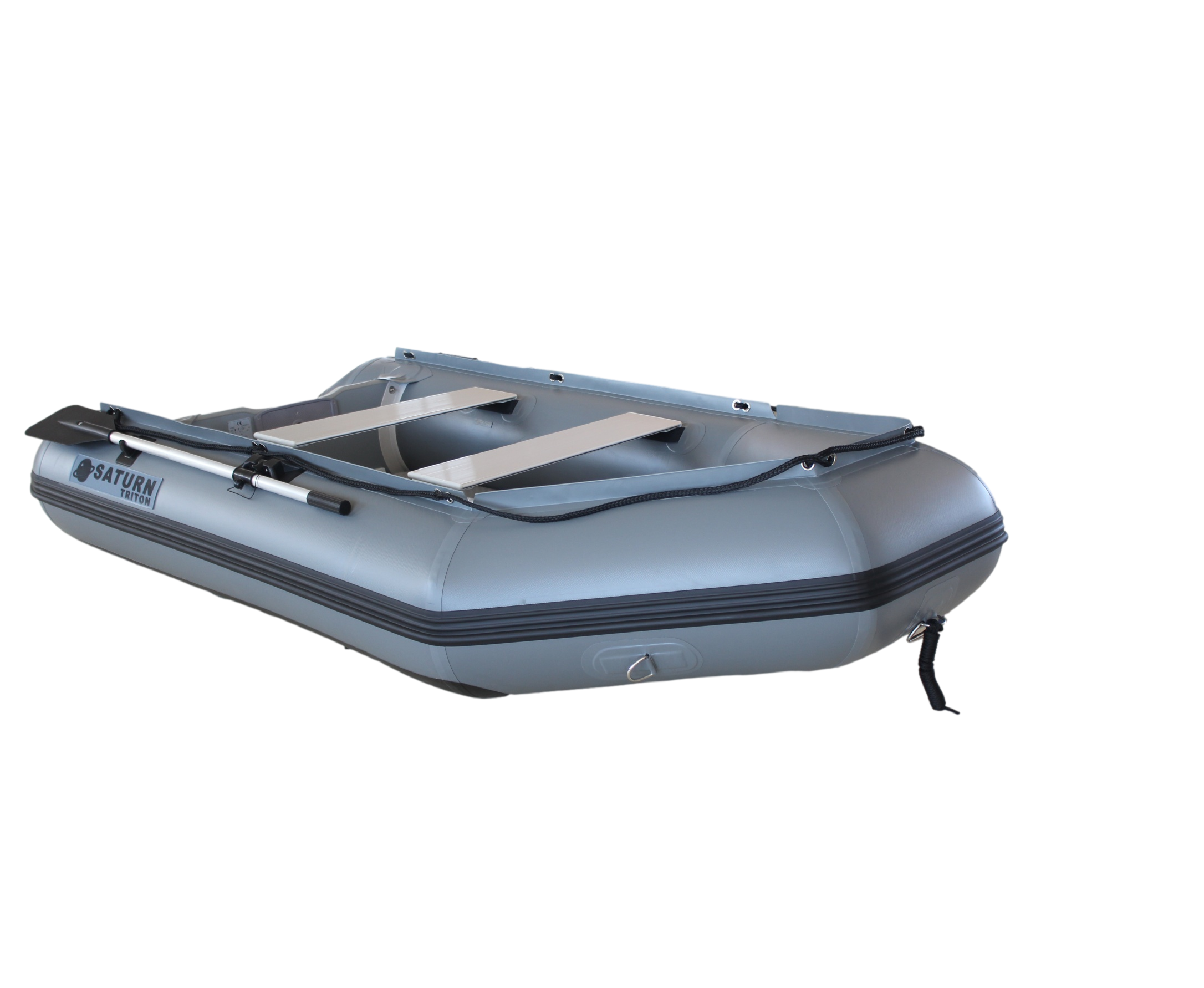 The new 11' Saturn Triton Dinghy Tenders have been a huge hit and one of our most popular products over the last 20 years. The new Triton models are finally back in stock! The Triton Series upgrades for 2025 represent our largest ever upgrade package and include over $450 additional value over the standard heavy-duty series. The Triton upgrades offered for this model include our heavy-duty 35 OZ Suijia 1.2mm 2000 Denier PVC ($250 value and over 30% thicker than our Standard model), UK imported Leafield D7 inflation valves and A6 PRV valve ($150 value), fiberglass coated marine grade plywood transom ($50 value), 2000 cc capacity 7.2psi barrel pump ($50 value), and an extended 3-year warranty. These Triton series improvements incorporate the newest technologies in inflatable boat construction and provide an incredible value for those looking to put their boat to the test. If available, this option will be listed under the "Model" selection.