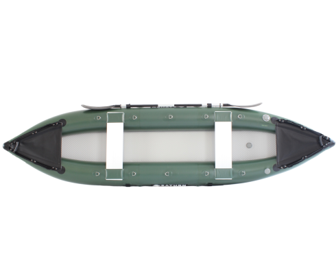 This kayak is made of the same heavy-duty 1100 Dtex PVC (Triton version upgrades include 1.2mm Italian Suijia PVC) as many of our other Saturn inflatable boats and the drop-stitch high-pressure airdeck floor is the most rigid inflatable floor on the inflatable kayak market. The floor is made to support up to 3 adults (even though that would be a tight squeeze). A double layer of PVC fabric is applied to the bottom and an extra layer has been added to the high contact areas of the top tubes supporting the aluminum bench seats. Our rigid high buoyancy tubes and customized floor make the Saturn TRFK396 kayak so stable, that you can stand up and fish if needed (see the photos of our customers doing just that). 13' Saturn Fishing Kayak (FK396 - Does Not Show the FK396X Upgrades)