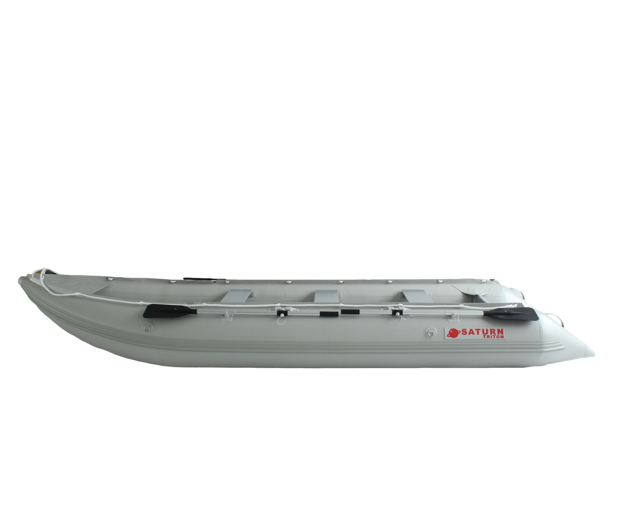 The new Saturn Triton Outfitter KaBoats have been a huge hit and inventory is going fast. The new Triton models just arrived and are now available to order! The Triton Series upgrades for 2025 represent our largest ever upgrade package and include over $500 additional value over the standard heavy-duty series. The Triton upgrades offered for the 15' Saturn Outfitter KaBoat include our heavy-duty 35 OZ Suijia 1.2mm 2000 Denier PVC ($250 value and nearly 50% thicker than our Standard model), UK imported Leafield D7 inflation valves ($150 value), diminished tube elevated 8" bow design ($100 value), fiberglass coated marine grade plywood transom ($50 value), 2000 cc capacity 7.2psi barrel pump ($50 value), and an extended 3-year warranty. These Triton series improvements incorporate the newest technologies in inflatable boat construction and provide an incredible value for those looking to put their boat to the test. If available, this option will be listed under the "Model" selection.15' Saturn Triton Outfitter KaBoat (TRSK470XL)
