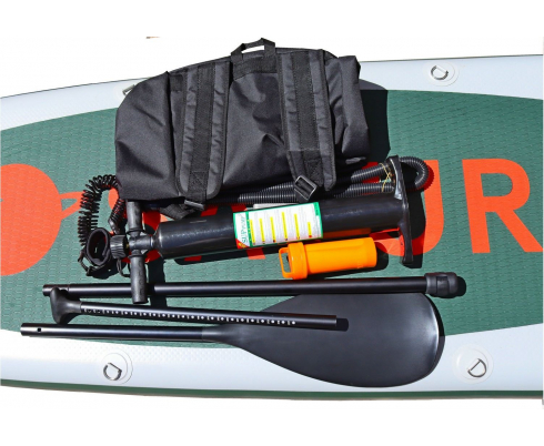 - INCLUDED: hand pump with pressure gauge, SUP paddle, repair kit, safety leash.