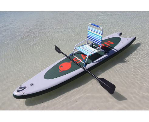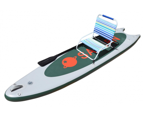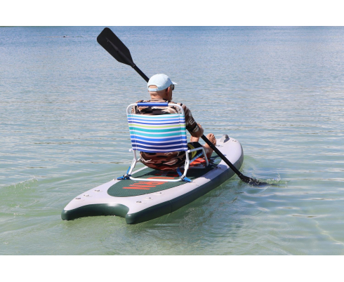 Saturn Inflatable SUP paddle board SUP325 have set of 4 D-rings on both sides of the board for the attachment of optional kayak seat or sand beach chair, to use this paddle board as a sit-on-top kayak. Secure low profile beach chair with optional tie downs, and paddle in a total comfort! Or, use it for stand up paddling or surfing waves. Paddle board comes with 1 large removable fin and 2 small surfing fins.